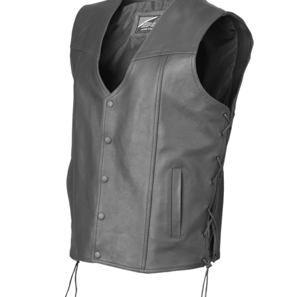 Kamizelka od firmy BÜSEwykonana ze skóry bydlęcej (100%) o grubości ok. 1,2mm. Wyposażona w poliestrową (100%) podszewkę. Dwie kieszenie wewnętrzne i dwie kieszenie zewnętrzne.