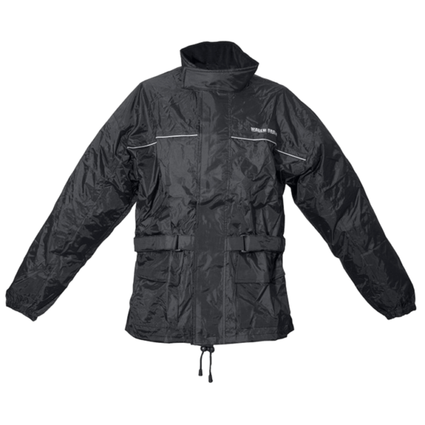 Przeciwdeszczowa kurtka 8023 wykonana z wodo - i wiatroszczelnej tkaniny powlekanej PU. Wyposażona w odblaskowe wstawki dla zwiększenia bezpieczeństwa na drodze.