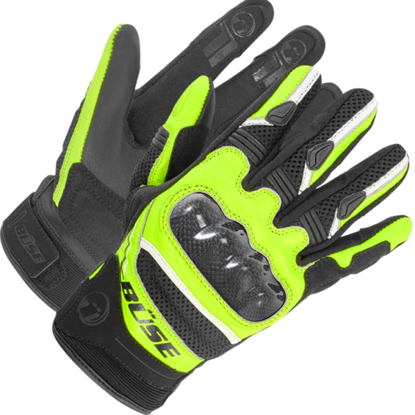 Rękawice motocyklowe skórzane Büse Safe Ride czarno-neonowe