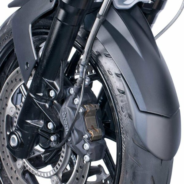 Przedłużenie przedniego błotnika zapewnia ochronę dolnej części motocykla – kolektorów układu wydechowego, owiewek i innych elementów – przed zabrudzeniami z przedniej opony.