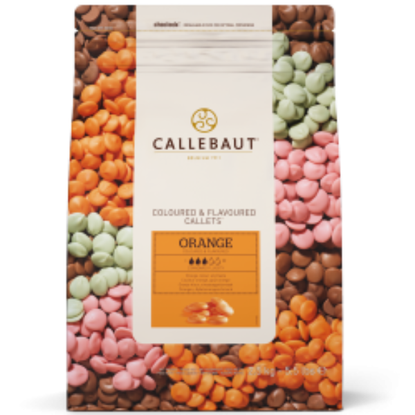 Dzięki ich standardowej płynności zastosowanie pomarańczowych Callets™ jest tak samo rozległe, jak tradycyjnych czekolad. Doskonale nadają się do dodawania kolorowych detali do pustych figurek i pralin, a także do tworzenia niewielkich barwionych ozdób. Są też doskonałe do nadawania odświeżającego smaku kremom i musom. Rozpuszczanie, temperowanie i chłodzenie odbywa się dokładnie tak samo jak w przypadku naszych klasycznych białych czekolad.Pomarańczowe Callets™ są wykonane z barwników w 100% bez związków azowych.