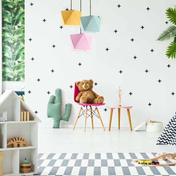 Potrójny nowoczesny geometryczny żyrandol Majorka. Doskonale się sprawdzi w pokoju dziecięcym lub salonie. Okrągła metalowa podsufitka unosi na różnych wysokościach trzy elementy imitujące wygląd prawdziwych diamentów. Abażury tej lampy występują w lekkiej pastelowej kolorystyce, która dodatkowo osłodzi pomieszczenie malucha i nada mu czarodziejskiego klimatu. Oświetlenie charakteryzuje się wysoką jakością materiałów, z których zostało stworzone oraz precyzyjna formą wykonania. Stelaż lampy wiszącej MAJORKA wykonany jest z metalu i dostępny jest w 6 wariantach kolorystycznych: białym, srebrnym, czarnym (malowane proszkowo) oraz w chromie, stali szczotkowanej oraz patynie (powłoki galwaniczne).Źródło światła: 3 * 60W , gwint E27 (tzw. duży gwint) w klasach energetycznych od A++ do E oraz żarówek LED.Wymiary:abażur: wysokość: 16 cm, szerokość: 16 x 16 cm, przekątna: 22,5 cmstelaż+ abażur: wysokość: 120 cm( z możliwością regulacji), szerokość: 40 cmIstnieje możliwość doboru trzech różnych wariantów kolorystycznych abażurów oraz podsufitek.Made in PolandGwarancja: 2 lata