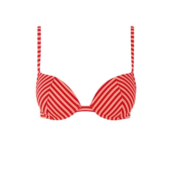 Góra od stroju kąpielowego z fiszbinami typu Push-up. Wszyta termicznie wkładka powiększająca biust kreuje piękny dekolt. Cukierkowa, letnia kolorystyka.Do kompletu dostępne majtki kąpielowe w różnych fasonach z serii Amalfi Baby.Skład:80% Poliamid, 20% Elastan