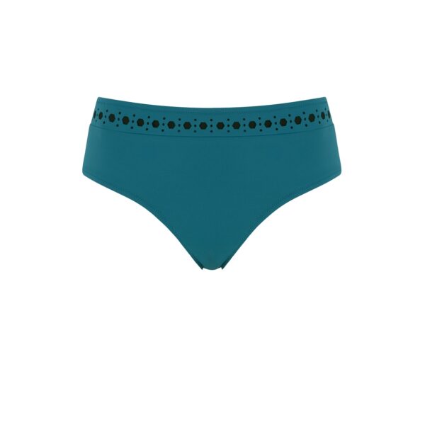 Majtki od stroju kąpielowego typu Hipster o szerszych bokach. Model z serii Tamarama, uszyty z wysokiej jakości, szybkoschnącej tkaniny. Przód podszyty dodatkową warstwą gładkiego materiału dla większego komfortu. Głęboka, morska kolorystyka z kontrastowym, czarnym zdobieniem w górnej partii.Skład:80% Poliamid, 20% ElastanPodszycie:100% Poliester