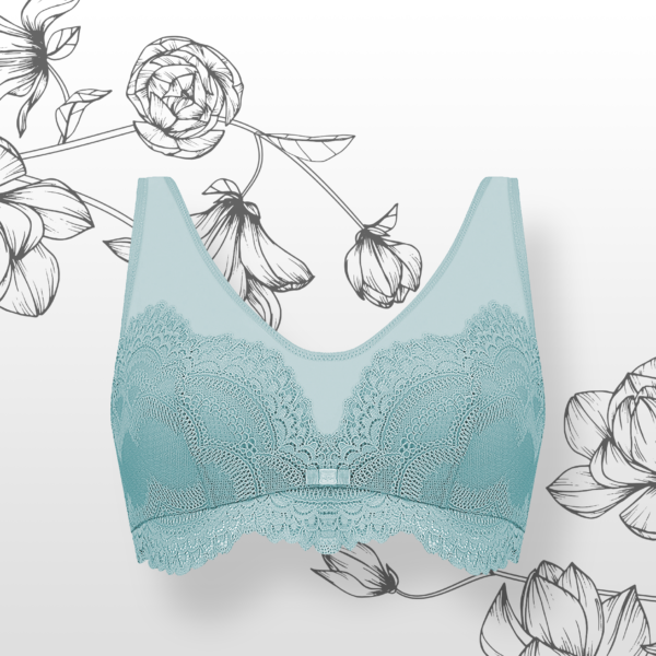 Miękki biustonosz na fiszbinach typu Bralette. Uszyty z delikatnego tiulu z dodatkiem koronki, szerokie ramiączka oraz wszyta koronkowa taśma pod biustem gwarantują idealne dopasowanie i komfort noszenia. Model posiada elastyczne boczne fiszbiny, zaokrąglony dekolt zabudowany wykonany z delikatnego tiulu. Kolor miętowy.Skład:90% Poliamid, 10% Elastan.