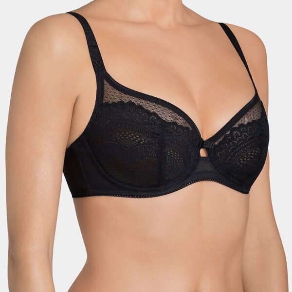 Miękki biustonosz na fiszbinach zdobiony koronką. Fason z 3-częściową konstrukcją miseczek perfekcyjnie obejmuje i modeluje biust, a podszycie z tiulu zapewnia jeszcze większy komfort noszenia. Elastyczne fiszbiny 3D oraz fiszbiny boczne zapewniaja optymalne podtrzymanie pełniejszego biustu.Skład:66% Poliamid, 20% Elastan, 14% Poliester.
