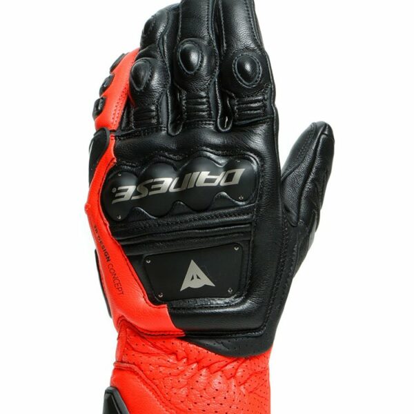 Krótkie rękawice sportowe 4 Stroke 2 marki Dainese o skórzanej konstrukcji zapewniają doskonały komfort, kontrolę i pewność podczas jazdy. Posiadają protektory ze stali nierdzewnej, system kontroli zniekształceń (DCP) na małym palcu zmniejszający ryzyko nienaturalnego skręcania przy upadku i termoplastyczne ochraniacze na małym palcu, które zapewniają niespotykaną ochronę.