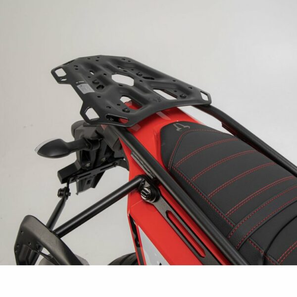 Dedykowane konkretnym modelom motocykli elementy mocujące pozwalają na łatwy montaż stelaża. ADVENTURE-RACK został, zaprojektowany z myślą o motocyklach turystycznych oraz sportowo-turystycznych, dlatego posiada dużą powierzchnię ładunkową. Liczna ilość dużych otworów zapewni stabilne i bezpieczne zamocowanie tylnego bagażu. Przygotowane otwory umożliwią również zamocowanie adapterów do kufrów SW-MOTECH Givi, Krauser i Shad lub SysBags.