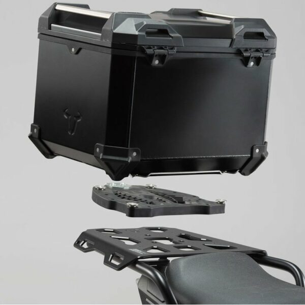 Kompletny zestaw, czyli wszystkie produkty pod jednym indeksem za pomocą których zamontujesz kufer centralny na swoim motocyklu. W skład tego zestawu wchodzą wszystkie produkty, tj.: kufer centralny TraX ADV, zamki do kufrów, płyta adaptacyjna, dedykowany do motocykla stelaż ALU-RACK. Przy rozwoju TraX ADV pojawiło się następujące wyzwanie. Zbudować kufry, które pokonają wszystkie przeszkody motocyklowej codzienności, lekkie i łatwe w obsłudze, po prostu dobre: od praktycznego zamka błyskawicznego, przez zdejmowalną pokrywę, po ergonomiczny uchwyt. TraX ADV łączą wysoką jakość z niską wagą. Ważą tylko od 4,6kg do 5,4 kg, czyli należą do grupy najlżejszych kufrów w swojej klasie.