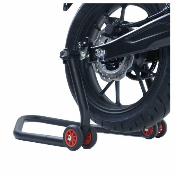 - Dzięki temu rozwiązaniu, idealnie pełnią funkcje klasycznych rolek wahacza służących do podnoszenia motocykla na podnośniku oraz dodatkowo chronią wahacz podczas upadku.