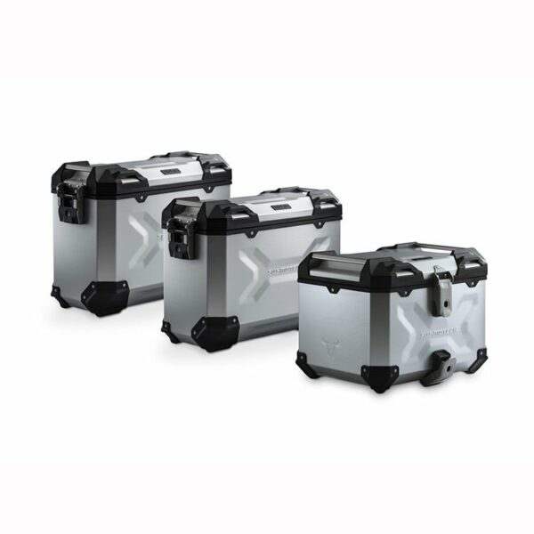 Zestaw: kufry boczne + kufer centralny + stelaże TRAX ADV Srebrny do motocykla Kawasaki Versys 1000 [18-] [pojemność: 2 x 45 + 38L]
