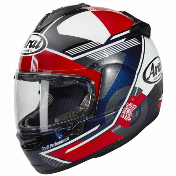 Chaser-X to już trzeci kask Arai, który korzysta z nowej technologii VAS ofeującej znacznie większą i gładszą powierzchnię powłoki. Chaser-X wykorzystuje całkowicie nowy system wentylacyjny pochodzący z RX-7V dla jeszcze lepszego przepływu powietrza. Wymienne wnętrze Eco Pure wyłożono tkaniną antybakteryjną. O blokadę wizjera dba system opracowany dla Formuły 1.