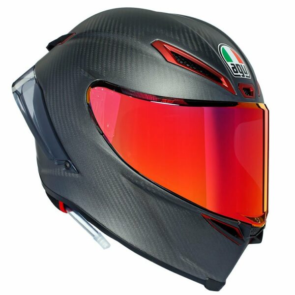 Kask wyścigowy wykonany w 100% z włókna węglowego, używany przez kierowców MotoGP ™. Grafika „Specjalna” z czerwonym wizjerem iridium.