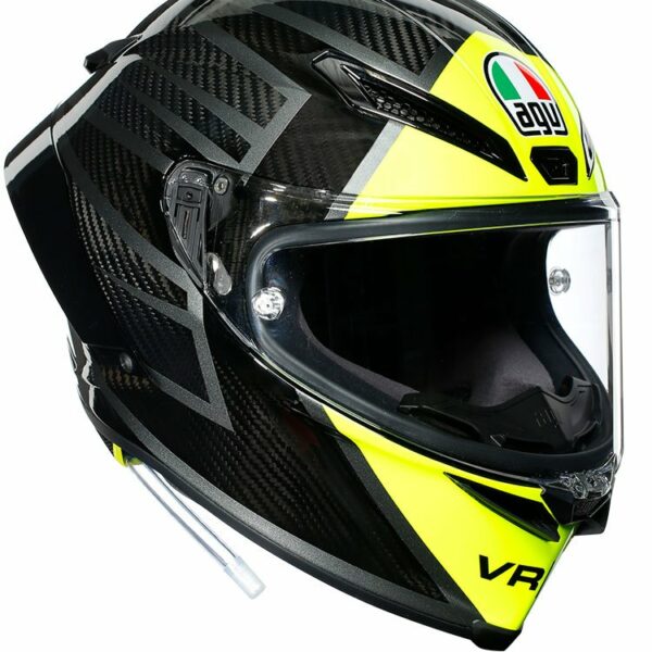 Kask wyścigowy wykonany w 100% z włókna węglowego, używany przez kierowców MotoGP ™. Grafika „Specjalna” z czerwonym wizjerem iridium.