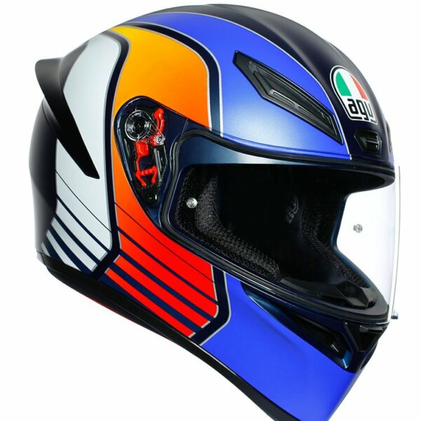 K1 to nowy kask sportowy AGV do codziennych wyzwań na drodze. Aerodynamiczny kształt, przednie otwory wentylacyjne oraz aerodynamiczny spojler maksymalizują osiągi aerodynamiczne kasku zapewniając stabilność przy większej prędkości. Panoramiczny wizjer zapewnia szersze boczne i pionowe pole widzenia dla całkowitej kontroli otoczenia.