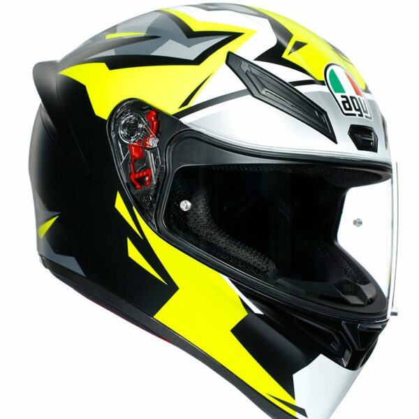K1 to nowy kask sportowy AGV do codziennych wyzwań na drodze. Aerodynamiczny kształt, przednie otwory wentylacyjne oraz aerodynamiczny spojler maksymalizują osiągi aerodynamiczne kasku zapewniając stabilność przy większej prędkości. Panoramiczny wizjer zapewnia szersze boczne i pionowe pole widzenia dla całkowitej kontroli otoczenia.