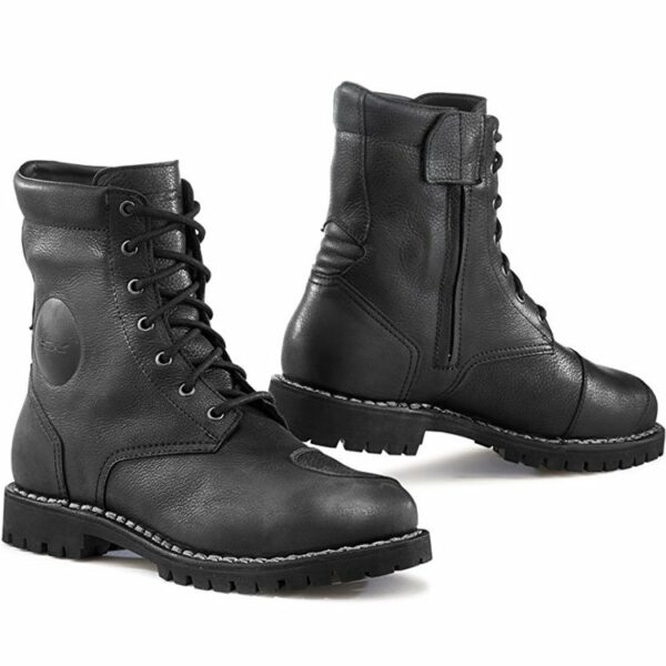 Skórzane buty z motocyklowe z wodoodporną podszewką i komfortową wkładką dopasowaną do anatomicznej budowy stopy.