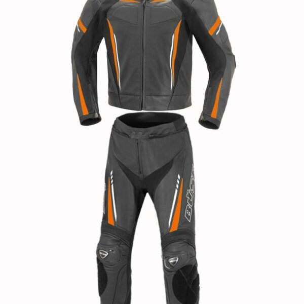 Dwuczęściowy skórzany kombinezon motocyklowy Büse Imola czarno-pomarańczowy