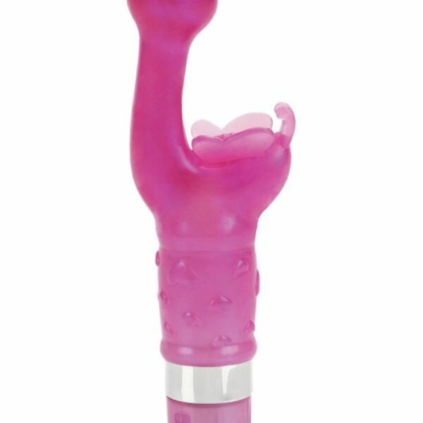 Średnica: 3cm - "główka" Rozmiar: 18,5cm, 7,5cm- penetracja vaginalna Zasilanie: Baterie 2xAAA (nie dołączone) Wodoodporność: Tak Tworzywo: Silkon Bardzo kobiecy wibrator dla ekstremalnej przyjemności. Super delikatny, z zakrzywioną końcówką- masuje i stymuluje wrażliwe miejsca. Wyprodukowany z miękkiego i elastycznego TPR, ukształtowany tak, aby Cię pieścić. Posiada dekorowany trzonek, końcówkę zakończonąkulkądo stymulacji punktu G oraz motylek do pieszczenia łechtaczki. Stymuluje w mocnym stopniu łechtaczkę oraz Punkt "G". Dziewięć funkcji wibracji, pulsacji i eskalacji. Łatwość sterowania jednym przyciskiem. Higiena Zadbaj o odpowiednią higienę swoich zabawek i własną. Użyj do czyszczenia odpowiedniego płynu antybakteryjnego . Nawilżanie Pamiętaj o właściwych lubrykantach przy używaniu zabawek. Dla własnego komfortu stosuj żele. Nigdy nie używaj żeli na bazie silikonu z zabawkami z silikonową powłoką.