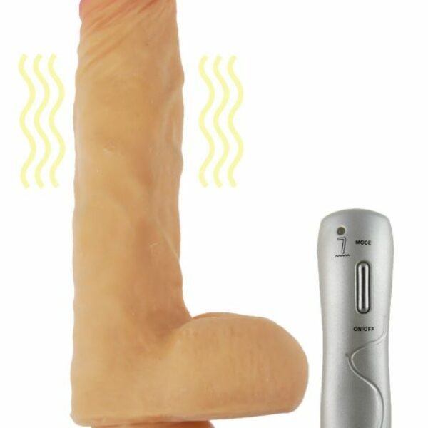 Długość całkowita 21 cm Średnica zewnętrzna 4 cm Długość penetracji 15 cm Dodatkowe informacje 7 rodzajów wibracji. Wibrator zasilany i sterowany przez pilota przewodowego. Typ baterii 3 x AAA (brak w zestawie); Regulacja prędkości tak Materiał Cyber Skóra Jego wygląd i ultra realistyczne ręcznie robione szczegółowe tekstury idealnie odwzorowują prawdziwego penisa. Super mocne wibracje w siedmiu odmianach zapewniają intensywną przyjemność. Wibrator idealny do grania solowego i równie świetny podczas gry wstępnej. Zastosowany materiał naprawdę oznacza rewolucję w realiźmie, specjalna mieszanka doskonale symuluje prawdziwą skórę. Ultra mocna przyssawka przywiera do niemal każdej gładkiej, płaskiej powierzchni. Wibrator zapewnia również doskonałą kompatybilność z systemem uprzęży Strap-On. Higiena Zadbaj o odpowiednią higienę swoich zabawek i własną. Użyj do czyszczenia odpowiedniego płynu antybakteryjnego. Nawilżanie Pamiętaj o właściwych lubrykantach przy używaniu zabawek. Dla własnego komfortu stosuj żele. Nigdy nie używaj żeli na bazie silikonu z zabawkami z silikonową powłoką.
