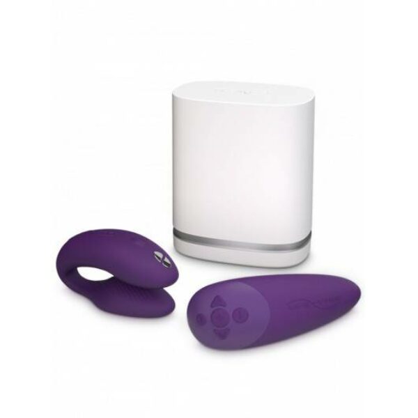 Chorus to nowy, ulepszony wibrator dla par w kształcie litery „C”, wyprodukowany przez kanadyjską markę We Vibe. Specjalna konstrukcja ramion wibratora umożliwia dopasowanie ich do kształtu każdego ciała. Jedną końcówkę umieszczamy w pochwie aby stymulowała punkt G a drugą układamy na łechtaczce. Wibrator posiada dwa mocne silniczki, generujące głębokie wibracje typu rumbly, które w trakcie stosunku będą odczuwane nie tylko przez kobietę, ale również przez jej partnera. Dodatkową opcją jest możliwość złożenia We Vibe Chorus w kształt jajeczka i umieszczenie w całości wewnątrz ciała. Można nim sterować za pomocą bezpłatnej aplikacji We-Connect (zainstalowanej na urządzeniu multimedialnym) lub załączonego pilota Squeeze Remote, który reaguje na nacisk dłoni – im mocniejszy uścisk, tym silniejsze wibracje. Chorus to pierwszy gadżet od We-Vibe® zasilany technologią AnkorLink ™, która zapewnia najbardziej stabilne połączenie między twoją zabawką a aplikacją We-Connect ™ (dzięki czemu sygnał nie gubi się w najgorętszych momentach). Pamiętaj jednak, aby podczas zabawy trzymać w pobliżu pilot Squeeze Remote ponieważ jest on kotwicą łączącą twój wibrator z aplikacją – dzięki temu uzyskasz najlepszą jakość połączenia. Za pomocą aplikacji We-Connect możesz sterować wibratorem z dowolnego miejsca na świecie oraz tworzyć i zapisywać własne sekwencje wibracji, co daje nieskończoną możliwość kombinacji. Dodatkowa opcja Touch-sense pozwala kontrolować wibracje ruchami palców: kiedy dotykasz lub przesuwasz palcem czujnik na ekranie smartphona zmienia się intensywności wibracji. We Vibe Chorus wykonany jest z bezpiecznego dla ciała silikonu wolnego od ftalanów, BPA oraz lateksu. Jest w 100% wodoodporny wiec można go używać także w wannie lub pod prysznicem oraz bez problemu umyć pod bieżącą wodą. W celu ułatwienia aplikacji polecamy używanie wyłącznie lubrykantów na bazie wody – inne rodzaje lubrykantów mogą trwale uszkodzić powłokę zabawki . W zestawie znajdziesz również dyskretną stację ładującą o nowoczesnym wyglądzie, która elegancko wygląda na szafce nocnej.