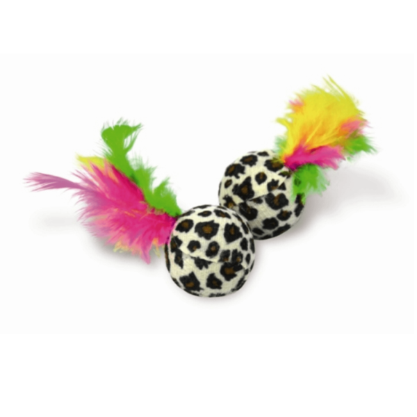 Miękkie piłeczki z piórkami stanowią doskonałą zabawę i pobudzają instynkt łowiecki kota.Umieszczona w środku grzechotka uatrakcyjnia zabawę.