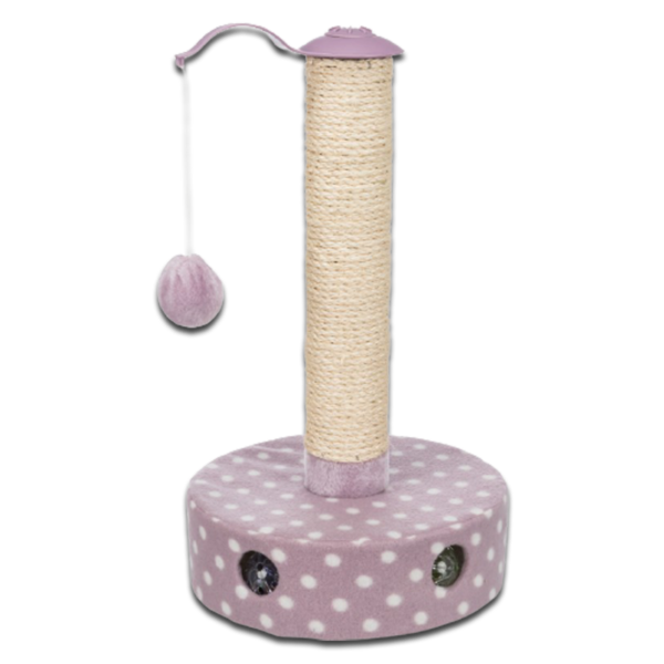 Uroczy drapak do zabawy, również dla małych kociąt, z solidnym sizalowym pniem, z zabawkami na gumce, obicie z flauszu, dwie ukryte piłeczki do zabawy w dolnej części, wymiary: Ø 26 x wys. 47 cm. Podstawa jest wyściełana, aby kot mógł wygodnie się na niej zwijać i drzemać. Trixie Junior jest nie tylko idealny do drapania, wspinaczki i drzemki, ale także wspaniale pasuje do wnętrz dzięki dekoracyjnemu wzornictwu. Wielofunkcyjny mebel do drapania, gwarantujący zwierzęciu ciekawe zajęcia.Trixie Junior drapak dla kota z flauszu:Mały drapak dla kociąt.Idealny do wspinaczek, drapania i zabawy.Wytrzymały słupek sizalowy: doskonale nadaje się do rozciągania się i wyciągania podczas pielęgnacji pazurów.Zabawki wewnątrz: dwie piłki w podstawie, zachęca do zabawy i gwarantuje długotrwałe zajęcia.Prawdziwe pióra: doczepione do drewnianej piłki na gumowej lince, do zabawy i polowań.Wysoka stabilność dzięki dużej podstawie obitej pluszem.Kolor: biało-liliowy. Materiał: 100% poliester.Wymiary całkowite: wys. x Ø: 47 x 26 cm.Podstawa: Ø 30 cm.Wymiary słupka sizalowego: Ø 6,5 cm.