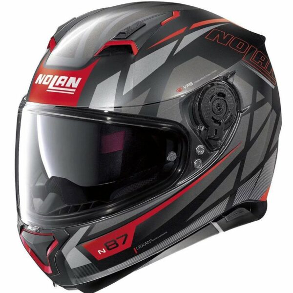 Kask integralny Nolan N87 Originality N-Com szaro-czerwony matowy
