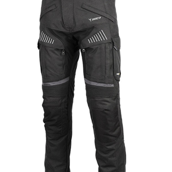 Spodnie Seca Strada Evo wykonane są z odpornego na przetarcia materiału Invista® Cordura® 500D. Wyposażone są w wodoodporną i oddychającą wypinaną membranę Humax odporną na słup wody do 12000 mm. Membrana wykończona jest bardzo trwałą podszewką AirMEsh. Odblaski ReflexLite® zapewniają doskonałą widoczność na drodze w kiepskich warunkach pogodowych. Za bezpieczeństwo odpowiadają protektory D3O® CE kolan. Dodatkowo w spodniach znajdują się kieszenie na protektory bioder D3O® CE (sprzedawane oddzielnie). System RespiAir+ z 6 otworami wentylacyjnymi (2 wypinane panele z przodu, 2 wyloty z tyłu, 2 otwierane panele) zapewnia idealny przepływ powietrza. Elastyczne panele umożliwiają większą swobodę ruchu podczas jazdy na motocyklu a system regulacji w pasie i na nogawkach zapewnia idealne dopasowanie do użytkownika. Na zewnątrz znajdują się dwie kieszenie typu cargo z klapkami. Funkcjonalny zamek 360° pozwala na spięcie spodni z kurtką. Zamek w dolnej części nogawki daje możliwość założenia spodni na buty.