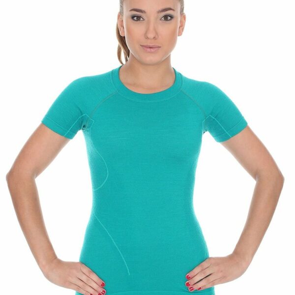 Koszulka damska Brubeck Active Wool z krótkim rękawem zielona
