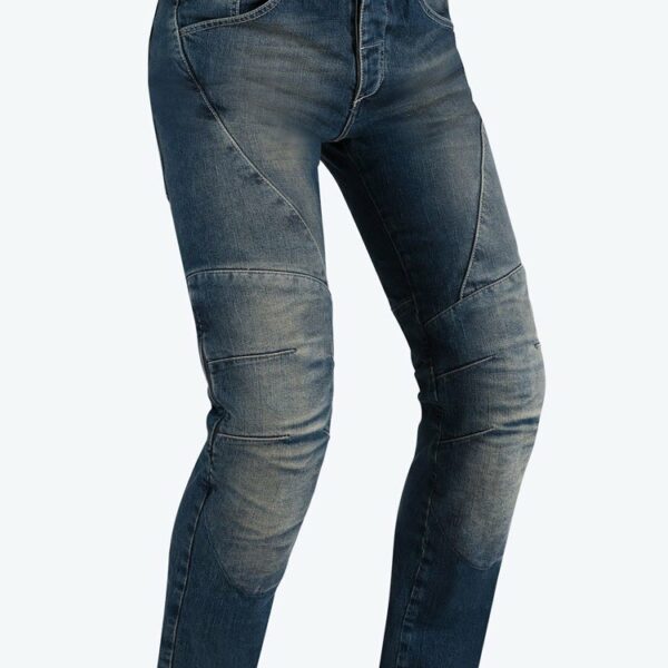 - Jeansy motocyklowe zgodne z normą EN 13595-1: 2002.