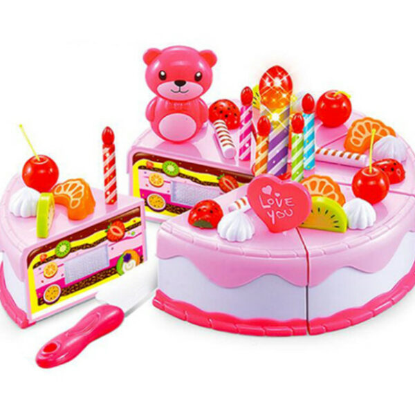 TORT DO KROJENIA38 EL. Różowy Piękny, kolorowy tort urodzinowy ze świeczkami i napisem.Tort składa się z 6 kawałków, które złączone są rzepami. Dziecko za pomocą plastikowego noża może pokroić tort. Dziecko może przybierać tort według własnego pomysłu.Tort posiada małe otwory umożliwiające jego dekoracjęDuża liczba akcesoriów daje nieograniczone możliwość dla początkującego cukiernika. Doskonała zabawka dla dzieci już od 3 roku życia.Zabawka korzystnie wpływa na wyobraźnię dziecka i zdolności manualne. W skład zestawu wchodzi:7x świeczek w tym jedna świecąca6x bez7x pałeczki lukrowe3x wisienki4x mandarynki3x truskawki3x kiwi1x miś6 kawałków tortunożykzestaw naklejek Średnica tortu: 14cm Wykonany z plastiku ABS Doskonały pomysł na prezent.Produkt fabrycznie nowy, zapakowany w oryginalne i estetyczne opakowanie.