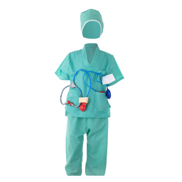 Strój Karnawałowy CHIRURG Fantastyczne wieloczęściowe przebranie, które pozwoli każdemu dziecku poczuć się jak prawdziwy chirurg Doskonały pomysł na prezent dla przyszłego lekarza.Strój Karnawałowy idealnie sprawdzi się jako przebranie dla malucha na różnego rodzaju imprezy karnawałowe, bale przebierańców, urodzinowe przyjęcia lub do codziennej zabawy. Zabawa w przebieranie się i odgrywanie różnych ról społecznych to nieodzowny element dzieciństwa. Dzieci chętnie wcielają się różne postacie i odgrywają scenki. Kostium pomoże w 100% wczuć się w rolę chirurga. Zestaw z pewnością przyniesie mnóstwo zabawy i radości dla każdego dziecka.W tym niepowtarzalnym przebraniu każde dziecko poczuje się wyjątkowo i wzbudzi zazdrość swoich rówieśników. Kostium może być wykorzystywany w celach prywatnych i komercyjnych. Zestaw świetnie sprawdzi się podczas występów teatralnych czy też sesji zdjęciowych. Kostium nadaje się zarówno dla dziewczynki jak i chłopca. Z boku bluzeczki znajduje się praktyczne zapięcie na rzep.Ponadto koszulka wyposażona została w małą kieszonkę umożliwająćą przechowywyanie drobiazgów.Przebranie do złudzenia przypomina prawdziwy strój chirurga.Strój składa się z: - bluzki zakładnanej przez głowę,- spodni na gumkę,- czepka na głowę,- stetoskopu,- ciśnieniomierza, - termometru,- strzykawki,- nożyczek,- młotka. Strój można wykorzystywać do codziennej zabawy dziecka dzięki której: - rozwinie kreatywność oraz wesprze rozwój intelektualny, - rozwinie dziecięcą wyobraźnię, - pozwoli doskonalić umiejętności społeczne oraz poznać jak zachować się w różnych sytuacjach, - wzbogaci słownictwo dziecka, - nauczy wyrażania emocji, empatii oraz rozwinie inteligencję emocjonalną, - podczas zabawy z inny dziećmi świetnie nauczy pracy w grupie. Wymiary fartucha mierzone na płasko: - całkowita długość bluzki: 43cm, - szerokość pod pachami 38cm, - długość rękawa od pachy 35cm, - szerokość rękawa: 15cm- szerkość spodni w pasie: 20- 40cm- długość spodni: 61cm Strój zapakowany w foliowe opakowanie na zatrzaski, które ułatwi przechowywanie.Wymiary opakowania: 38cm x 6,5cm x 46,5cm Idealny rozmiar dla dzieci od 3 do 8 lat.
