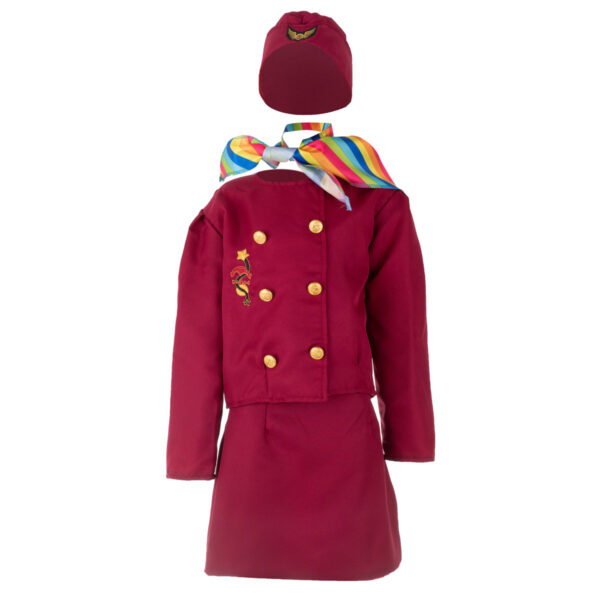 Strój Karnawałowy STEWARDESAFantastyczne wieloczęściowe przebranie, które pozwoli każdej dziewczynce poczuć się jak prawdziwa stewardesa.Doskonały pomysł na prezent dla przyszłej stewardesy.Strój Karnawałowy idealnie sprawdzi się jako przebranie dla malucha na różnego rodzaju imprezy karnawałowe, bale przebierańców, urodzinowe przyjęcia lub do codziennej zabawy.Zabawa w przebieranie się i odgrywanie różnych ról społecznych to nieodzowny element dzieciństwa.Dzieci chętnie wcielają się różne postacie i odgrywają scenki. Kostium pomoże w 100% wczuć się w rolę stewardesy.Zestaw z pewnością przyniesie mnóstwo zabawy i radości dla każdego dziecka.W tym niepowtarzalnym przebraniu każde dziecko poczuje się wyjątkowo i wzbudzi zazdrość swoich rówieśników. Kostium może być wykorzystywany w celach prywatnych i komercyjnych. Zestaw świetnie sprawdzi się podczas występów teatralnych czy też sesji zdjęciowych. Strój składa się z:- marynarki stewardesy zapinanej na rzepy,- spódniczki zapinanej na zamek,- wielokorowej chustki,- czapki. Strój można wykorzystywać do codziennej zabawy dziecka dzięki której:- rozwinie kreatywność oraz wesprze rozwój intelektualny,- rozwinie dziecięcą wyobraźnię,- pozwoli doskonalić umiejętności społeczne oraz poznać jak zachować się w różnych sytuacjach,- wzbogaci słownictwo dziecka,- nauczy wyrażania emocji, empatii oraz rozwinie inteligencję emocjonalną,- podczas zabawy z inny dziećmi świetnie nauczy pracy w grupie. Wymiary stroju mierzone na płasko: - całkowita długość marynarki ok 38 cm, - szerokość pod pachami 36 cm, - długość rękawa od pachy 33 cm, - długość rękawa od ramienia 40 cm,- całkowita długość spódniczki 34 cm,- szerokość w pasie 28 cm. - wymiary opakowania 50x5,5x38.Strój zapakowany w foliowe opakowanie na zatrzaski, które ułatwi przechowywanie.Idealny rozmiar dla dzieci od 3 do 8 lat.