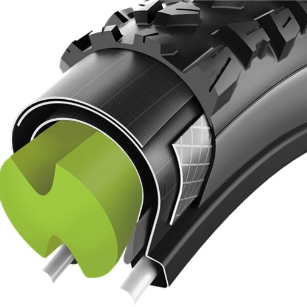 Vittoria AirLiner wkładka do oponyAir-Liner to wysokiej jakości wkładka polimerowa, która zastępuje część objętości powietrza w oponie. Ta cecha, w połączeniu z kształtem poprawia wydajność jazdy. Air-Liner pozwala na zachowanie stabilności, przyczepności i kontroli opon, nawet przy niskich ciśnieniach. Dodatkowo wkładka Airliner zwiększa ochronę obręczy przed wgnieceniami. Airliner zapobiega również ewentualnym uszkodzeniom obrzeży opony oraz zwiększa komfort jazdy absorbując drgania o wysokiej częstotliwości. Stosując wkładkę AirLiner można używać znacznie lżejszych opon. Nowa wkładka Vittorii zwiększa stabilność opony na bokach przy równoczesnym miękkim i przyczepnym bieżnikiem. Poprawia to pokonywanie zakrętów, wznoszenie i hamowanie.Cykl życia produktu według informacji producenta wynosi 2000 godzin przy normalnej jeździe lub 1 godzinę w przypadku uszkodzenia opony.Air-Liner jest dostępny w 4 rozmiarach i jest kompatybilny dla wszystkich marek i modeli opon.