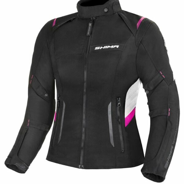 Shima Rush Lady to 3-warstwowa motocyklowa kurtka tekstylna która idealnie sprawdzi się w każdych warunkach. Wyposażona jest w wypinaną wodoodporną membranę NextDry oraz podpinkę ocieplającą przypinane do kurtki za pomocą intuicyjnie oznaczonych zapięć EvoLINK. System paneli wentylacyjnych H3 Heat Free na klatce piersiowej, przedramionach, bokach i plecach zapewnia idealny przepływ powietrza. Za bezpieczeństwo odpowiadają certyfikowane protektory ArmorPlus pleców wraz z ochraniaczami ramion oraz łokci. Dodatkowo kurtkę wyposażyć można w protektor klatki piersiowej SAS-TEC (sprzedawany oddzielnie) tworząc kompletny zestaw ochrony górnej części ciała motocyklisty. Podwójnie szwy oraz wzmocnienia materiału na ramionach i łokciach zapewnia doskonałą ochronę przed przetarciami i rozdarciami. Rush Lady posiada rozbudowany system regulacji pozwalający na indywidualne dopasowanie do sylwetki. System paneli odblaskowych Night Vision gwarantuje widoczność podczas nocnych wypraw. Kurkę można spiąć ze spodniami za pomocą zamków (360 i krótkiego). Sucha kieszeń pozwoli na komfortowe przechowywanie najpotrzebniejszych przedmiotów.