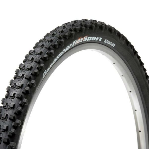 Panaracer opona MTB Fire SportOpona do kół 27,5" oraz 29". Uniwersalna: przód/tył. Opona ze stalowymi drutami na obrzeżach. Fire Sport jest oponą w której klocki bieżnika maja różną wysokość, co zapewnia przyczepność w zakretach na różnych rodzajach nawierzchni.Waga: 900 g (27,5"); 930 g (29")Rozmiar: 27,5x2.35, 29x2.35Informacje na temat wymiany dętki, oraz rodzajów wentyli znajdują się w naszym poradniku.