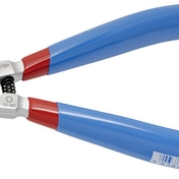 UNIOR Szczypce kątowe do pierścieni osadczychKute, całkowicie utwardzane i odpuszczane, wykonane ze specjalnej stali narzędziowej. Posiadają polerowane szczęki i są chromowane zgodnie ze standardem EN12540. Końcówki czernione, uchwyty pokryte dwukomponentowym tworzywem. Wykonane zgodnie z DIN 5254 A. O 30% zwiększona wytrzymałość względem normalnych szczypiec do pierścieni rozprężnych. Końcówki wstawiane. Nadają się do osadzenia pierścieni na wałach, dla średnic od 3 do 10 mm.