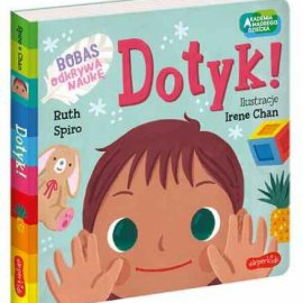 „Dotyk! Bobas odkrywa naukę. Akademia mądrego dziecka.” to pięknie i kolorowo ilustrowana książeczka edukacyjna dla najmłodszych, która najprostszymi słowami i pojęciami zapoznaje maluszki z działaniem jednego ze zmysłów - dotyku. Książeczka w prosty sposób pokazuje jak to się dzieje, że dzidziuś dotykając miękkiego sweterka czuje miły dotyk, a mokry miś jest nie miły w odczuciu.