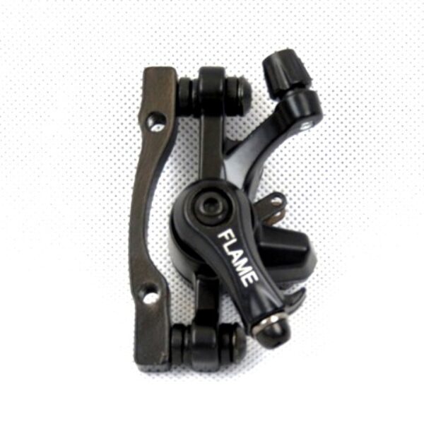 FLAME zacisk hamulca SF-DB23 F/R czarny, przód, tyłZacisk hamulca tarczowego mechaniczny Flame - na linkęPrzeznaczony do tarczy hamulcowej przedniej o średnicy 160/180mmMocowanie zacisku IS - boczne