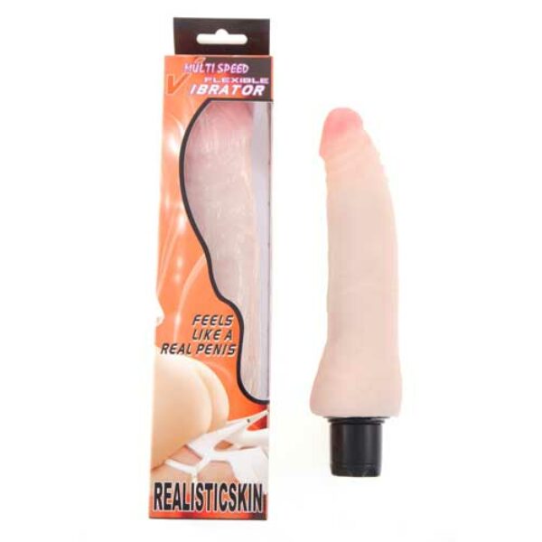 Realistyczny wibrator, posiadający na całej powierzchni wypustki w postaci żył. Wykonany przyjemnego w dotyku materiału, nie powodującego podrażnień. Przede wszystkim jest niesamowicie realistyczny również w dotyku. Multispeed Flexible Vibrator - Realisticskin: - super realistyczny kształt, - płynnie regulowane wibracje, - wypustki w kształcie żył, - różowa, zarysowana główka, - wąska końcówka umożliwia uciechy analne, - delikatne wypustki stymulujące, - przyjemny w dotyku materiał, - aksamitny i delikatny, - naturalny kolor, - wysoka jakość produktu. Wymiary : Długość ok. 18,5 cm. Szerokość ok. 4 cm. Materiał: Miękki, żelowy materiał, imitujący ludzką skórę. Kolor: naturalny. Zasilanie: Działa na 2 baterie AA, do zakupienia osobno. Przypominamy że do produktu dostępny jest żel w super cenie AQUA SENSUEL 100ML oraz baterie PHILIPS.SexshopSexshop Kraków