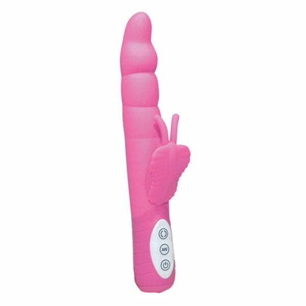 Sweet Smile - Fancy to wibrator w kolorze jasnego różu. Wypróbuj jego mocy!Trzon z wypustkami ma funkcje rotacji, które zapewnią niezwykłe doznania.Motylek stymulujący łechtaczkę spotęguje przyjemność.Ilość trybów:wibracja - 7rotacja - 3Wymiarydługość - 24 cmobwód - 2,4-3,4 cmMateriał:Silikon i ABSZasilanie:Baterie 3 x AAA