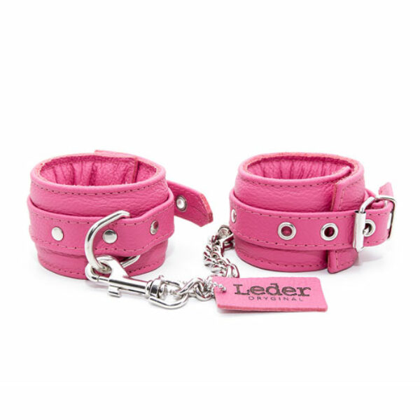Leder - Skórzane, wygodne kajdanki na ręce w kolorze rózowym