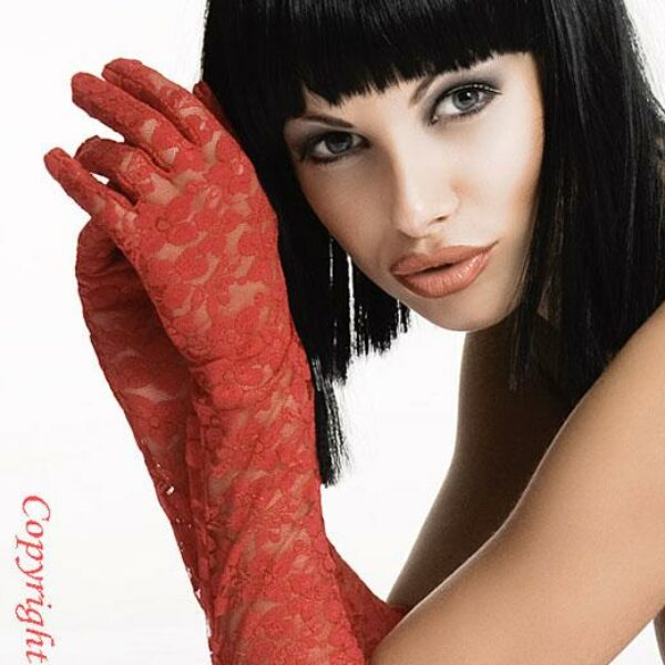 Chilirose - Gloria White O/S. Czerwone koronkowe rękawiczki