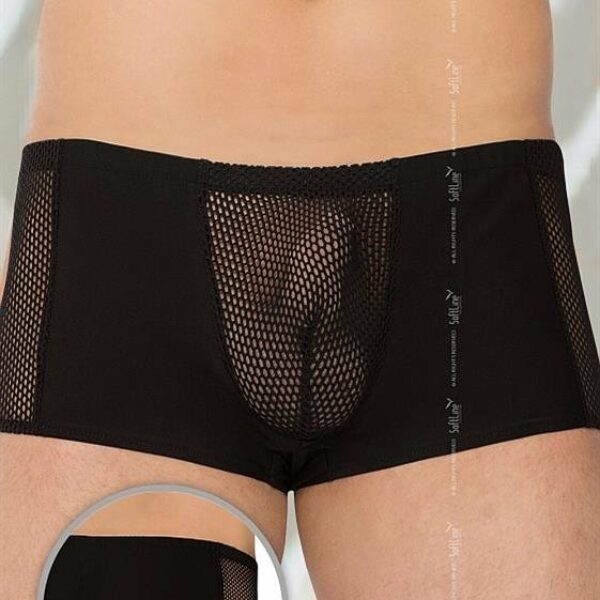 Siateczkowe męskie bokserki.Wykonane z połączenia kabaretowej siateczki i elastycznej lycry. Kabaretkowa siatka znajduje się z przodu i z boku.Rozmiar: M