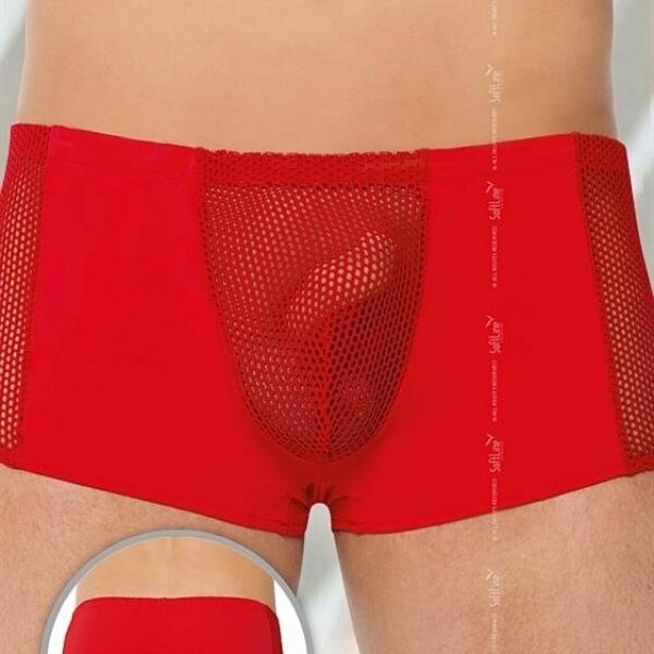 Siateczkowe męskie bokserki.Wykonane z połączenia kabaretowej siateczki i elastycznej lycry. Kabaretkowa siatka znajduje się z przodu i z boku.Kolor: czerwony Rozmiar: M