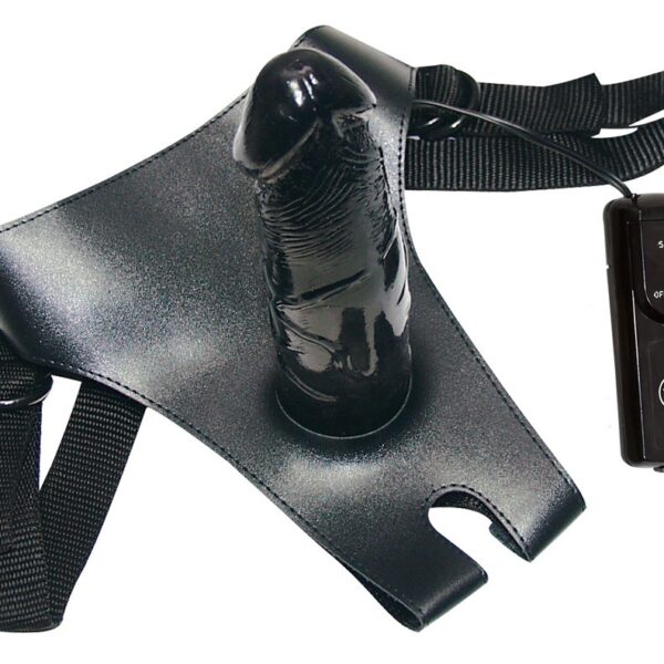 Strap-on z czarnym wibrującym dildo.Dildo można używać oddzielnie - bez pasa. Wykonane z miękkiego materiału i przyjemnego w dotyku. Dzięki pilotowi możesz wybrać najbardziej pasujące Ci wibracje.Wymiary:Średnica: 3,5cm - 4cm Długość: 17cm Zasilanie: Bateria 2xAA (niedołączone ) Wodoodporność: Nie Tworzywo: PVC wolny od ftalanów