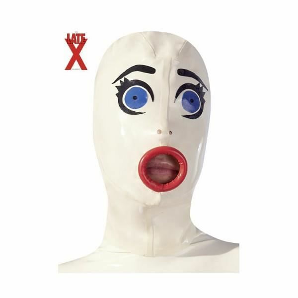 Lateksowa maska z nadrukiem twarzy lalki.Marka: LateXSeria profesjonalna. Niemiecki projekt.