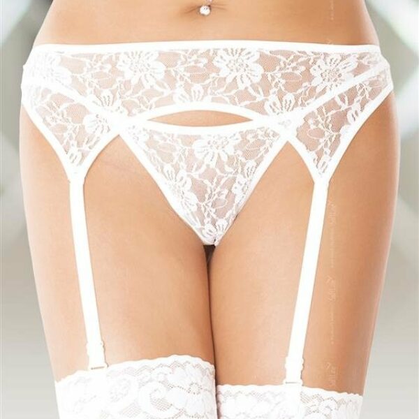 Delikatny, koronkowy pas do pończoch ze stringami. Doskonały zestaw, który sprawdzi się w każdej sytuacji.Kolor: biały Rozmiar: S/M