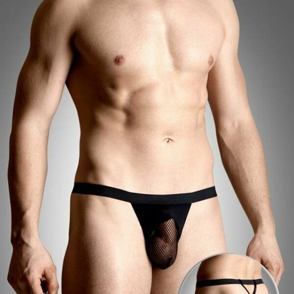 Softline - Mens Thong 4494 rozmiar XL. Czarne stringi z przezroczystą siateczką.